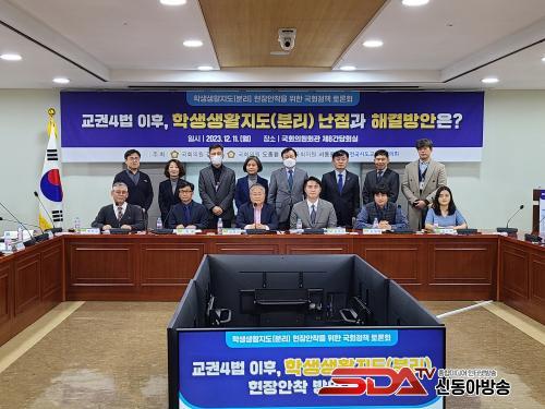 [½Åµ¿¾Æ¹æ¼Û Àü³²¿©¼ö=À̽ŵ¿±âÀÚ]Àü±¹½Ãµµ±³À°°¨ÇùÀÇȸ(ȸÀå Á¶Èñ¿¬ ¼­¿ï½Ã±³À°°¨, ÀÌÇÏ ÇùÀÇȸ)´Â 12¿ù 11ÀÏ(¿ù) ¿ÀÈÄ, ¼­¿ïƯº°½Ã ¿µµîÆ÷±¸ ±¹È¸ÀÇ¿øÈ¸°ü Á¦8°£´ãȸ½Ç¿¡¼­ Çлý»ýȰÁöµµ(ºÐ¸®) ÇöÀå ¾ÈÂø ¹æ¾È ¸ð»öÀ» À§ÇÑ ±¹È¸Á¤Ã¥Åä·Ðȸ¸¦ °³ÃÖÇÏ¿´´Ù. ÀÌ Á¤Ã¥Åä·Ðȸ´Â ÇùÀÇȸ ¹× ±¹È¸ ±³À°À§¿øÈ¸ °­¹ÎÁ¤, µµÁ¾È¯, ¼­µ¿¿ë ÀÇ¿øÀÌ °øµ¿À¸·Î ÁÖÃÖÇÏ¿´´Ù.