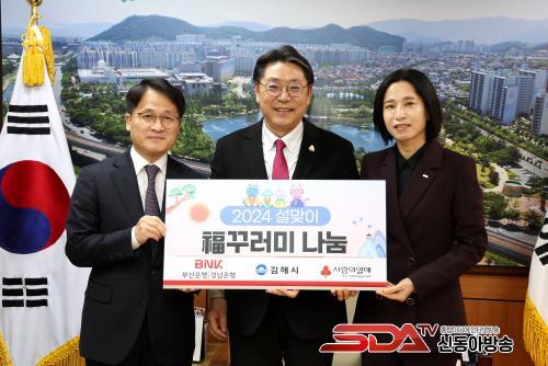 [½Åµ¿¾Æ¹æ¼Û´º½º=ÃÖ¼ÛÈ­±âÀÚ] ±èÇØ½Ã(½ÃÀå ȫſë)´Â 24ÀÏ BNK±ÝÀ¶±×·ì¿¡¼­ ¼³À» ¸Â¾Æ ¾î·Á¿î ÀÌ¿ô¿¡°Ô Àü´ÞÇØ ´Þ¶ó¸ç 5¸¸¿ø »ó´çÀÇ º¹²Ù·¯¹Ì »óÀÚ 500°³(2,500¸¸¿ø »ó´ç)¸¦ ±âŹÇß´Ù°í ¹àÇû´Ù.