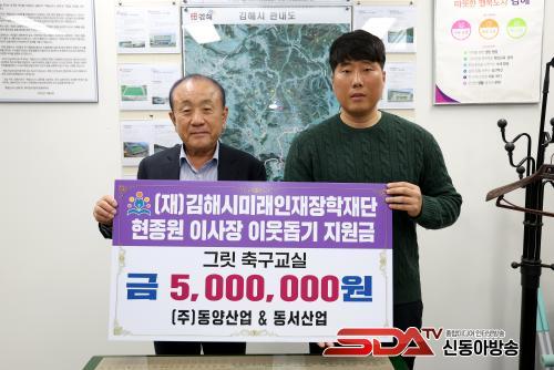 [½Åµ¿¾Æ¹æ¼Û´º½º=ÃÖ¼ÛÈ­±âÀÚ] ±èÇØ½Ã¹Ì·¡ÀÎÀçÀåÇÐÀç´ÜÀº 6ÀÏ Àç´Ü ÇöÁ¾¿ø ÀÌ»çÀåÀÌ ¼³À» ¸Â¾Æ ±èÇØ ±×¸´ Ã౸±³½Ç°ú °æ³²»çȸº¹Áö°øµ¿¸ð±Ýȸ¿¡ °¢°¢ 500¸¸¿ø¾¿ °³ÀÎ ±âºÎÇß´Ù°í ¹àÇû´Ù.