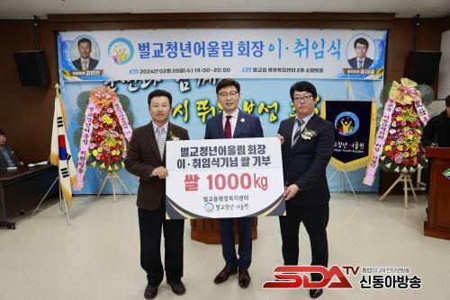 ¹ú±³Ã»³â¾î¿ï¸² ȸÀå ÀÌ․ÃëÀÓ½ÄÀ» ±â³äÇØ ÀÌÀÓÇÑ Àü ±èÇöÁø ȸÀå(¿ÞÂÊ), ±èö¿ì ±º¼ö(°¡¿îµ¥), À±´ëÁß ÃëÀÓ È¸ÀåÀÌ ¹é¹Ì 1,000kg ±âºÎ ±â³ä ÃÔ¿µÀ» Çϰí ÀÖ´Ù.