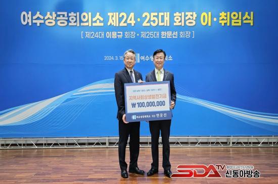 ƯÈ÷, À̹ø ÀÌ¡¤ÃëÀӽĿ¡¼´Â Çѹ®¼± ȸÀåÀÌ »çÀ縦 Ã⿬ÇÏ¿© ¿©¼ö½Ã¿¡ Áö¿ª»çȸ»ó»ý¹ßÀü±â±Ý 1¾ï¿øÀ» Àü´ÞÇÏ¿´°í, ¿©¼ö»óÀÇ ºÎȸÀåÀÎ (ÁÖ)¸¶¸°±Û·Î¸® Á¶¼ºÁ¾ ȸÀåÀº ¿©¼ö»óÀÇ ¹ßÀü±â±ÝÀ¸·Î 1¾ï¿øÀ» Çѹ®¼± ȸÀå¿¡°Ô Àü´ÞÇß´Ù.