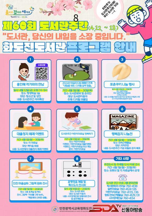 Áö¿ªÁÖ¹ÎÀÇ µ¶¼ »ýÈ°È ¹× ÀаȾ² ¿îµ¿ È®»êÀ» À§ÇØ µµ¼°üÁÖ°£ Çà»ç´Â Áö¿ªÁֹΠ´©±¸³ª ¹«·á·Î Âü°¡ÇÒ ¼ö ÀÖ´Ù. °ü·Ã ÀÚ¼¼ÇÑ »çÇ×Àº ȵµÁøµµ¼°ü ȨÆäÀÌÁö(https://lib.ice.go.kr/hwadojin)¸¦ Âü°íÇϰųª ÀüÈ(¢Ï760-4138)·Î ¹®ÀÇÇÏ¸é µÈ´Ù.