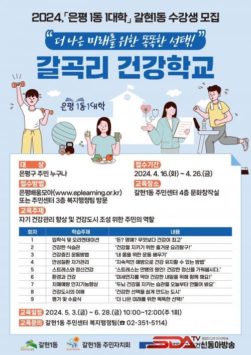 ¡®°¥°î¸® °Ç°Çб³¡¯´Â ÀºÆò±¸¹ÎÀ» ´ë»óÀ¸·Î Àڱ⠰ǰ°ü¸® Çâ»ó°ú °Ç°µµ½Ã Á¶¼ºÀ» À§ÇÑ ÁÖ¹ÎÀÇ ¿ªÇÒÀ» ÁÖÁ¦·Î ¿î¿µµÈ´Ù. ¿À´Â 26ÀϱîÁö Âü°¡ÀÚ 20¸í ¼±Âø¼ø ¸ðÁýÇÑ´Ù.
