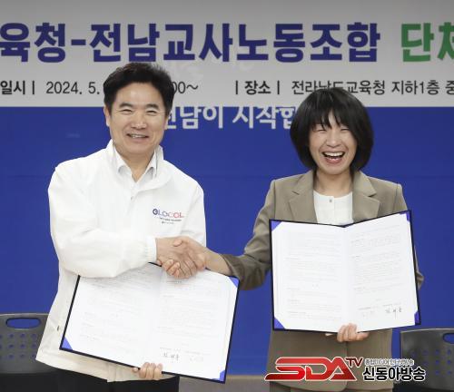 Àü³²±³»ç³ëµ¿Á¶ÇÕ ±è½Å¾È À§¿øÀåÀº ¡°4³â ¸¸¿¡ Àü³²±³»ç³ëµ¿Á¶ÇÕ ´ÜüÇù¾àÀÌ Ã¼°áµÇ¾î ³Ê¹« °¨°Ý½º·´°í ±â»Ú´Ù.¡±¸é¼ ¡°¾ÕÀ¸·Î ´ÜüÇù¾àÀÌ Çб³¿¡¼ Àß ÁöÄÑÁö±æ ¹Ù¶ó°í, Àü¶ó³²µµ±³À°Ã»°ú ÇÔ²² Àü³²±³À°ÀÇ ¹ßÀüÀ» À§ÇØ ´õ¿í Èû¾²°Ú´Ù.¡±°í ¼Ò°¨À» ¹àÇû´Ù.