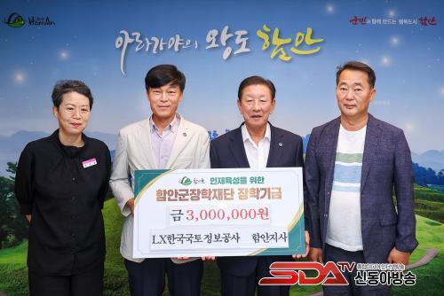 LXÇѱ¹±¹ÅäÁ¤º¸°ø»ç ÇÔ¾ÈÁö»ç Á÷¿øµé, ÇԾȱºÀåÇÐÀç´Ü¿¡ ÀåÇбâ±Ý 300¸¸ ¿ø ±âŹ