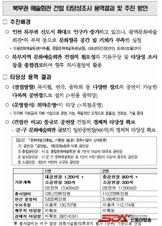 ÀÌ¿¡ µû¶ó ÀÎõ½Ã´Â Áß°ø¿¬Àå(900¼®) ±Ô¸ðÀÇ ¹®È¿¹¼úȸ°üÀÌ Å¸´ç¼ºÀ» È®º¸ÇßÀ½À» È®ÀÎÇϰí, ¹®È¿¹¼úÁøÈï¹ý ½ÃÇà·É¿¡ µû¸¥ ÀϹݰø¿¬ÀåÀ¸·Î ºÐ·ùµÈ ±¸¡¤±º ¹®È¿¹¼úȸ°üÀ¸·Î °Ç¸³ ¹× ¿î¿µÇÏ´Â °ÍÀÌ ÀûÀýÇÏ´Ù°í ÆÇ´ÜÇß´Ù. ´Ù¸¸, ½Ã¿¡¼ Á÷Á¢ °Ç¸³ÇÏ´Â °ÍÀÌ ¾Æ´Ñ, ¹®È¿¹¼úȸ°üÀÌ ÇÊ¿äÇÑ ±¸(°è¾ç, °Ë´Ü, ¿µÁ¾)¿¡ ÃÖ´ë 50%±îÁö ÀçÁ¤ Áö¿øÀ» ÇÏ¿© ±¸º° ¼ö¿ä ¹× Ư¼º¿¡ ¸Â´Â ¹®È¿¹¼úȸ°üÀ» °Ç¸³ÇÏ´Â °ÍÀÌ ÁֹεéÀÇ ¹®È ÇâÀ¯ ±âȸ È®´ë ¹× Áö¿ª ±ÕÇü ¹ßÀüÀ» µµ¸ðÇÒ ¼ö ÀÖÀ» °ÍÀ¸·Î ³»´ÙºÃ´Ù.