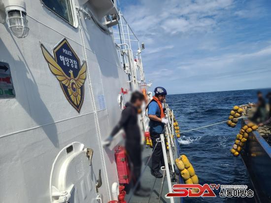 ÇØ°æ »óȲ½Ç·ÎºÎÅÍ ±¸Á¶ ÇùÁ¶ ¿äûÀ» ¹ÞÀº 95Åæ±Þ ¿Ü²øÀÌÀúÀθÁ¾î¼± BÈ£¿¡¼ À̵¿ Áß »ç°í ÇØÁ¡À¸·ÎºÎÅÍ ³²¼ÂÊ ¾à 3.3km ÇØ»ó¿¡ Ç¥·ù ÁßÀÌ´ø Àá¼öºÎ 2¸íÀ» ¹ß°ßÇÏ°í ¹«»çÈ÷ ±¸Á¶Çß´Ù.