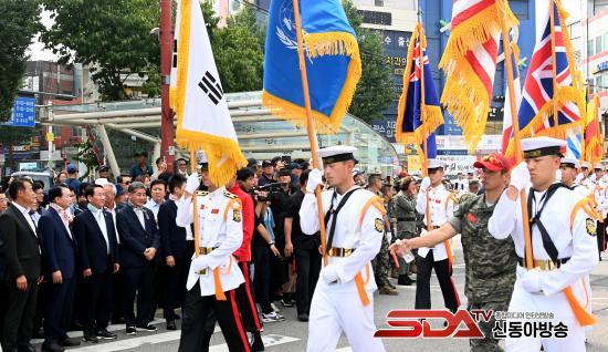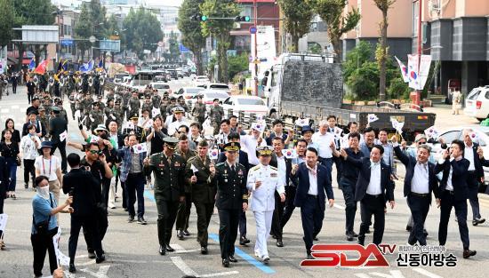 ÇÑÆí Á¦74ÁÖ³â ÀÎõ»ó·úÀÛÀü ±â³ä½Ä¿¡ Âü¼®ÇÑ ÂüÀü¿ë»ç, Àü±¹Çغ´´ë Àü¿ìȸ¿Í ÇØº´´ë Çö¿ª´ë´ë, º¸ÈÆ´Üü µî 1,500¿© ¸íÀº ±â³ä½ÄÀÌ ³¡³ ÈÄ ½Ã¹Î°ú ÇÕ·ù, ÀÎõ»ó·úÀÛÀü±â³ä ½Ã°¡ÇàÁø¿¡ ÇÕ·ùÇß´Ù.