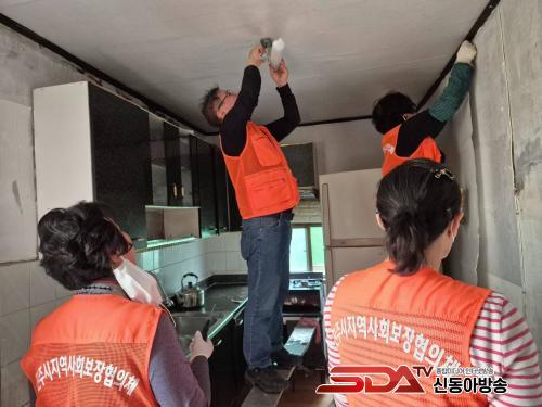 À̳¯ ºÀ»ç¿¡ Âü¿©ÇÑ 10¿© ¸íÀÇ À§¿øµéÀº Áý¾ÈÀÇ ³°Àº °¡±¸¿Í ÁüÀ» ¿Å±â°í, ÇØÁø º®Áö¿Í ÀåÆÇÀ» »õ°ÍÀ¸·Î ±³Ã¼ÇÏ¸ç ±¸½½¶¡À» Èê·È´Ù. ¶ÇÇÑ ¾î¸£½ÅÀÇ ¾ÈºÎ¸¦ »ìÇǰí Áý ¾ÈÆÆÀÇ »ýȰ ¾²·¹±â¸¦ ¼ö°ÅÇÏ´Â µî ´ë´ëÀûÀΠȯ°æ Á¤ºñ Ȱµ¿µµ º´ÇàÇß´Ù.
