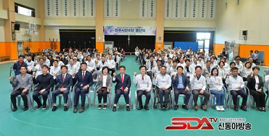 À̳¯ °á´Ü½Ä¿¡´Â ÁøÁֽà ¼±¼ö´ÜÀ» °Ý·ÁÇϱâ À§ÇØ ÁøÁÖ½Ã¿Í ÁøÁÖ½ÃÀÇȸ °ü°èÀÚ¸¦ ºñ·ÔÇØ Àå¾ÖÀδÜü¿Í ½Ã¼³ °ü°èÀÚ, Àå¾ÖÀÎüÀ°È¸ ÀÓ¿ø, °¡¸Í ´ÜüÀå µî 180¿© ¸íÀÌ Âü¼®ÇÑ °¡¿îµ¥ ÁøÁֽà ¼±¼ö´ÜÀÇ ¼±ÀüÀ» ±â¿øÇÏ°í °Ý·ÁÇß´Ù.