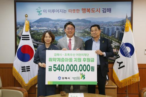±èÇØ½Ã-ÃÊ·Ï¿ì»ê ¾î¸°ÀÌÀç´Ü, ÈÄ¿ø±Ý ¾àÁ¤ ¿ÃÇØ ±èÇØ ¾Æµ¿ 450¸í¿¡ 5¾ï4õ¸¸¿ø Áö¿ø
