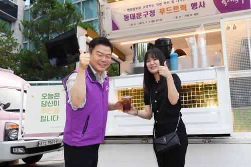 [½Åµ¿¾Æ¹æ¼Û µ¿´ë¹®=À̽ŵ¿±âÀÚ] µ¿´ë¹®±¸´Â ¹Î¼±8±â 1ÁÖ³âÀ» ¸Â¾Æ 3ÀÏ Ãâ±Ù½Ã°£, ±¸Ã» ¾Õ ±¤Àå¿¡¼­ Á÷¿ø°Ý·Á ¹× »ç±âÁøÀÛÀ» À§ÇÑ ¡®ÇªµåÆ®·° Çà»ç¡¯¸¦ °¡Á³´Ù. ÀÌÇÊÇü ±¸Ã»Àå°ú ±¸ °£ºÎµéÀº 07:30~08:50±îÁö ¹Ì¸® ÁغñµÈ »÷µåÀ§Ä¡¸¦ Á÷¿øµé¿¡°Ô ³ª´²ÁÖ¸ç ±×µ¿¾ÈÀÇ ³ë¡¦