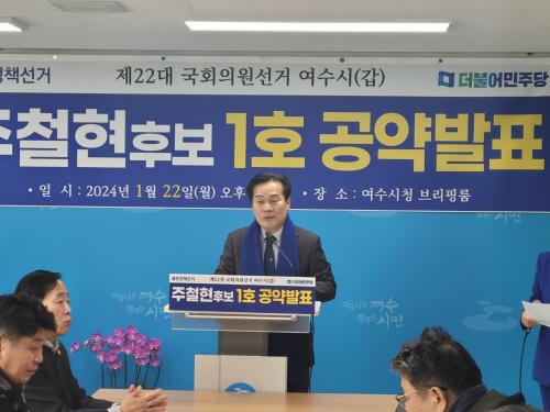 [½Åµ¿¾Æ¹æ¼Û¿©¼ö=±è±â³² ±âÀÚ] 4¿ù 10ÀÏ ½Ç½ÃµÇ´Â Á¦22´ë ±¹È¸ÀÇ¿ø¼±°Å ¿©¼ö½Ã°© ¼±°Å±¸¿¡ Ã⸶ÇÑ ÁÖöÇö ±¹È¸ÀÇ¿ø(´õºÒ¾î¹ÎÁÖ´ç)ÀÌ 22ÀÏ ¿ÀÈÄ 2½Ã ¿©¼ö½Ãû ºê¸®Çη뿡¼­ ±âÀÚȸ°ßÀ» ¿­°í, ¡°ÃѼ± 1È£ °ø¾àÀ¸·Î ¿©¼ö¸¦ º¹ÇÕÇØ¾ç·¹Àú°ü±¤ °ÅÁ¡µµ½Ã·Î °Ç¼³Çϰڴ١±°í¡¦