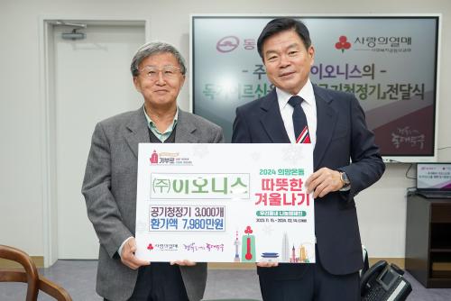 [½Åµ¿¾Æ¹æ¼Û µ¿´ë¹®=À̽ŵ¿±âÀÚ]µ¿´ë¹®±¸Àº 5ÀÏ ÁÖ½Äȸ»ç ÀÌ¿À´Ï½º(´ëÇ¥ Àå¼®¿î)°¡ °ü³» Àú¼Òµæ µ¶°Å¾î¸£½Å¿¡°Ô Àü´ÞÇÒ ¼ÒÇü °ø±âûÁ¤±â 3,000°³¸¦ ±âºÎÇß´Ù°í ¹àÇû´Ù. ÁÖ½Äȸ»ç ÀÌ¿À´Ï½º´Â 2022³â 7¿ùºÎÅÍ ¼­¿ï½Ã¸¦ ºñ·ÔÇÑ °æ±â, ÃæÃ» µî Áö¹æÀÚÄ¡´Üü 54±ºµ¥¸¦ ´ë»ó¡¦