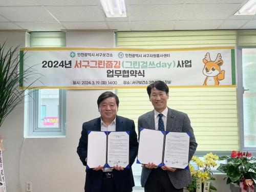 [½Åµ¿¾Æ¹æ¼Û ÀÎõ=À±¹Î½Ä±âÀÚ] ÀÎõ±¤¿ª½Ã ¼­±¸ º¸°Ç¼Ò´Â Áö³­ 19ÀÏ ÀÎõ±¤¿ª½Ã ¼­±¸ÀÚ¿øºÀ»ç¼¾ÅÍ(¼¾ÅÍÀå ÀÓ°æÈ¯)¿Í °Ç°­ÁõÁø ¹× ȯ°æº¸È£, ÀÚ¿øºÀ»ç Ȱ¼ºÈ­¸¦ À§ÇÑ ¡º¼­±¸±×¸°Áݱë(±×¸°°É¾²day)»ç¾÷ ¾÷¹«Çù¾à¡»À» ü°áÇß´Ù°í ¹àÇû´Ù. 4¿ùºÎÅÍ ½Å±Ô ÃßÁøµÇ´Â ¼­±¸¡¦
