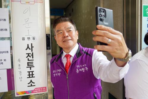 [½Åµ¿¾Æ¹æ¼Û µ¿´ë¹®±¸=À̽ŵ¿±âÀÚ]ÀÌÇÊÇü µ¿´ë¹®±¸Ã»ÀåÀÌ ¡®Á¦22´ë ±¹È¸ÀÇ¿ø ¼±°Å¡¯ »çÀüÅõÇ¥ ½ÃÀÛÀÏÀÎ 5ÀÏ À̹®Á¦1µ¿ Áֹμ¾ÅÍ 4Ãþ¿¡ ¸¶·ÃµÈ »çÀüÅõÇ¥¼Ò¸¦ ã¾Æ ÅõÇ¥¿¡ Âü¿©Çß´Ù. <@1> ÀÌÇÊÇü µ¿´ë¹®±¸Ã»ÀåÀº ¡°ÅõÇ¥´Â ±¹¹ÎÀÇ ´ç¿¬ÇÑ ±Ç¸®ÀÌÀÚ Àǹ«¡±¶ó¸ç ¡°±¸¹Îµé²²¡¦