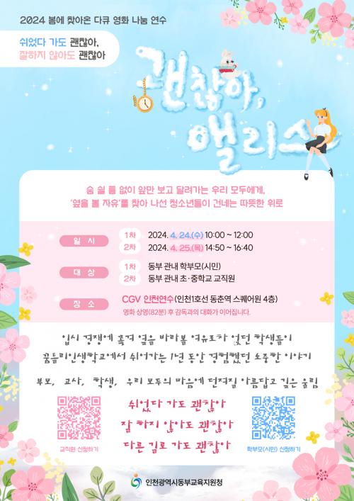 [½Åµ¿¾Æ¹æ¼Û ÀÎõ= À±¹Î½Ä±âÀÚ]ÀÎõµ¿ºÎ±³À°Áö¿øÃ»(±³À°Àå ÀÌ¿ëÈñ)Àº °ü³» Çкθð¿Í ±³Á÷¿øÀ» ´ë»óÀ¸·Î ´ÙÅ¥ ¿µÈ­ ³ª´® ¿¬¼ö ¡®½¬¾ú´Ù °¡µµ ±¦Âú¾Æ, ÀßÇÏÁö ¾Ê¾Æµµ ±¦Âú¾Æ¡¯¸¦ 24Àϰú 25ÀÏ CGVÀÎõ¿¬¼ö¿¡¼­ ½Ç½ÃÇÑ´Ù. ¿¬¼ö´Â °ü³» Çкθð¿Í ±³Á÷¿øÀÌ ÇÔ²² ÇູÇÑ ±³¡¦