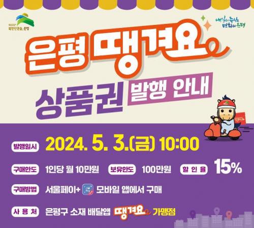 [½Åµ¿¾Æ¹æ¼Û ÀºÆò±¸=À̽ŵ¿±âÀÚ]ÀºÆò±¸´Â °ü³» ¼Ò»ó°øÀÎÀÇ ³ôÀº ¹è´ÞÁß°³¼ö¼ö·á ºÎ´ãÀ» ¿ÏÈ­ÇÏ°í ¼ÒºñÀÚ¿¡°Ô´Â ÇÒÀÎµÈ ±Ý¾×À¸·Î °ø°ø¹è´Þ¾ÛÀ» ÀÌ¿ëÇÒ ¼ö ÀÖµµ·Ï ³»´Þ 3ÀÏ ¡®ÀºÆò¶¯°Ü¿ä»óǰ±Ç¡¯ 15% ÇÒÀÎ ÆÇ¸Å¸¦ ½ÃÀÛÇÑ´Ù°í ¹àÇû´Ù. ¡®ÀºÆò¶¯°Ü¿ä»óǰ±Ç¡¯Àº ÀºÆò±¸ °ø¡¦
