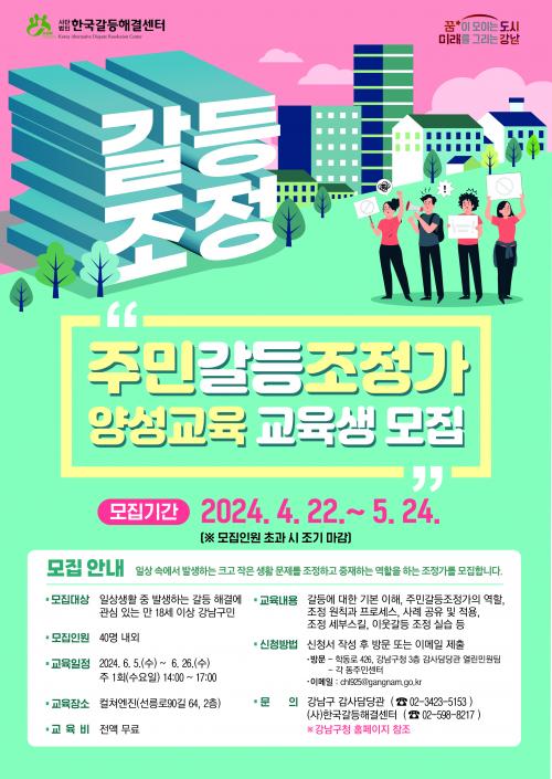 [½Åµ¿¾Æ¹æ¼Û °­³²±¸=À̽ŵ¿±âÀÚ]°­³²±¸°¡ ÀÏ»ó»ýȰ¿¡¼­ ¹ß»ýÇÏ´Â °¥µî ÇØ°á¿¡ °ü½É ÀÖ´Â ±¸¹ÎÀ» ´ë»óÀ¸·Î Áֹΰ¥µîÁ¶Á¤°¡ ¾ç¼º ±³À°À» ½Ç½ÃÇÏ°í ´ÙÀ½´Þ 24ÀϱîÁö ±³À°»ý 40¸íÀ» ¸ðÁýÇÑ´Ù. °øµ¿ÁÖÅÃÀÇ Ãþ°£¼ÒÀ½ ¹× Èí¿¬, »çÀ¯Áö ³» ÁÖ¡¤Á¤Â÷ ¹®Á¦ µî ÀÌ¿ô °£ÀÇ °¥µîÀÌ¡¦