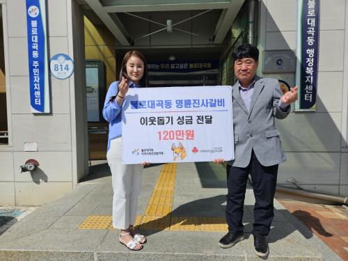 [½Åµ¿¾Æ¹æ¼Û ÀÎõ= À±¹Î½Ä±âÀÚ]ÀÎõ ¼­±¸ ºÒ·Î´ë°îµ¿(µ¿Àå ¼Û¼¼Á¾)ÇàÁ¤º¹Áö¼¾ÅÍ´Â Áö³­ 10ÀÏ ¸í·ûÁø»ç°¥ºñ ÀÎõºÒ·ÎÁ¡(´ëÇ¥ ±è¿µ±æ)À¸·ÎºÎÅÍ °¡Á¤ÀÇ ´ÞÀ» ¸ÂÀÌÇÏ¿© ÀÌ¿ôµ½±â ¼º±Ý 1,206,125¿øÀ» Àü´Þ¹Þ¾Ò´Ù°í ¹àÇû´Ù. ÇØ´ç ¼º±ÝÀº Àü±¹ ¸í·ûÁø»ç°¥ºñ °¡¸ÍÁ¡¿¡¼­ Áø¡¦