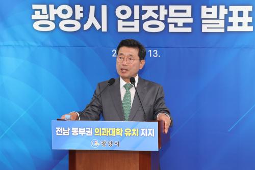 [½Åµ¿¾Æ¹æ¼Û±¤¾ç=¹Ú±¤¿Á±âÀÚ] Á¤ÀÎÈ­ ±¤¾ç½ÃÀåÀº 13ÀÏ ½Ãû ¿­¸°È«º¸¹æ¿¡¼­ ±âÀÚȸ°ßÀ» ¿­°í Àü³² µ¿ºÎ±Ç Àǰú´ëÇÐ À¯Ä¡¿¡ ´ëÇÑ ÀÔÀå¹®À» ¹ßÇ¥Çß´Ù. Á¤ ½ÃÀåÀº ÀÔÀå¹®À» ÅëÇØ ¡°½Å¼ÓÇϰí Àü¹®È­µÈ óġ°¡ ÇÊ¿äÇÑ ÀÀ±Þ »óȲ¿¡¼­ ±Ù°Å¸® »ó±Þ º´¿ø ºÎÀç·Î ÀÎÇØ Ä¡·á¹ÞÁö¡¦
