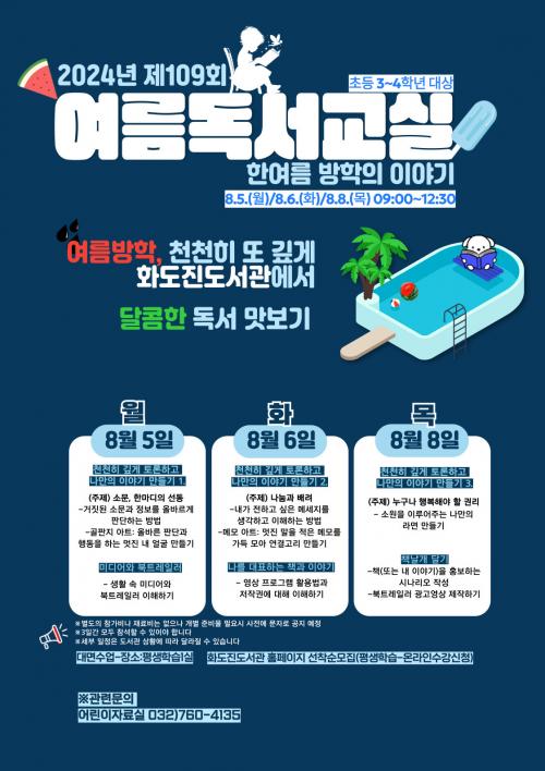 ÀÎõ±¤¿ª½Ã±³À°Ã»È­µµÁøµµ¼­°ü, 2024 Á¦109ȸ ¿©¸§ µ¶¼­±³½Ç ¿î¿µ