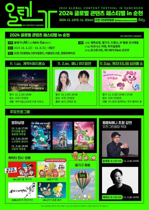 [½Åµ¿¾Æ¹æ¼Û ¼øÃµ=±è³²±â ±âÀÚ] ¿À´Â 11¿ù 1ÀÏ ¸·À» ¿©´Â ¡¸2024 ±Û·Î¹ú ÄÜÅÙÃ÷ Æä½ºÆ¼¹ú in ¼øÃµ(ÀÌÇÏ ÄÜÅÙÃ÷ Æä½ºÆ¼¹ú¡¹ÀÇ À±°ûÀÌ Á¡Â÷ µå·¯³ª¸ç Çà»ç ±â°£ ÁøÇàµÇ´Â ÇÁ·Î±×·¥¿¡ ´ëÇÑ °ü½ÉÀÌ ¶ß°Ì´Ù. Áö³­ 22ÀÏ Á¢¼ö¸¦ ½ÃÀÛÇÑ ¼øÃµ¡¿ÄíŰ·± ÄÝ¶óº¸ Ä·ÇΠüÇèÀº Á¢¼ö¡¦
