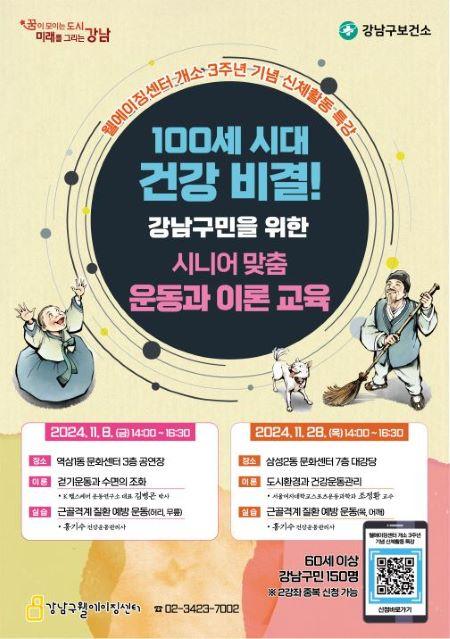 [½Åµ¿¾Æ¹æ¼Û °­³²±¸=À̽ŵ¿±âÀÚ] ²ÞÀÌ ¸ðÀÌ´Â µµ½Ã, ¹Ì·¡¸¦ ±×¸®´Â °­³²±¸°¡ À£¿¡ÀÌ¡¼¾ÅÍ °³¼Ò 3ÁÖ³âÀ» ¸Â¾Æ Ưº° °­Á ¡®100¼¼ ½Ã´ë °Ç°­ºñ°á! ½Ã´Ï¾î ¸ÂÃ㠿°ú ÀÌ·Ð ±³À°¡¯À» °³ÃÖÇÑ´Ù. 11¿ù 8Àϰú 28ÀÏ µÎ Â÷·Ê¿¡ °ÉÃÄ ¿­¸®¸ç, 60¼¼ ÀÌ»ó ÁֹΠ300¸íÀ» ´ë»óÀ¸·Î ¡¦