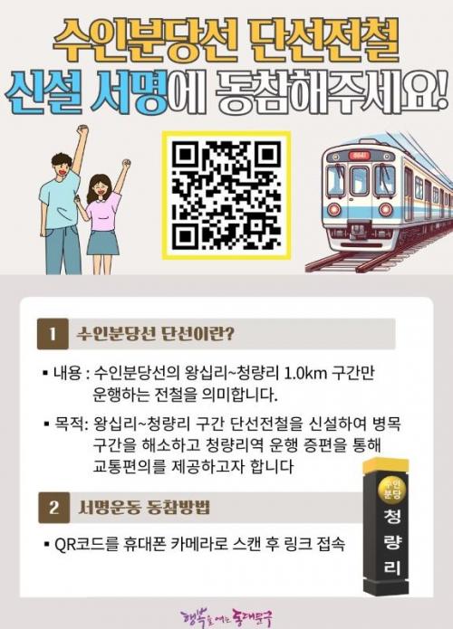 [½Åµ¿¾Æ¹æ¼Û µ¿´ë¹®±¸=À̽ŵ¿±âÀÚ] ¼­¿ï µ¿´ë¹®±¸´Â ¼öÀκд缱 ¡®Ã»·®¸®-¿Õ½Ê¸®¿ª 1km ´Ü¼± öµµ ½Å¼³¡¯¿¡ ´ëÇÑ ÀÚü Ÿ´ç¼º Á¶»ç ¿ë¿ª¿¡ Âø¼öÇß´Ù°í 4ÀÏ ¹àÇû´Ù. ¡®Ã»·®¸®-¿Õ½Ê¸®¿ª°£ ¼öÀκд缱 ´Ü¼±Ã¶µµ ½Å¼³¡¯Àº µ¿´ë¹®±¸°¡ Çѱ¹Ã¶µµ°ø»ç¿¡ °ÇÀÇÇÑ ÁõÂ÷¿äûÀÌ ¹«¡¦