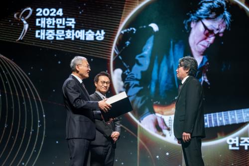 [½Åµ¿¾Æ¹æ¼Û = ½Å°æ½Ä ±âÀÚ] ´ëÇѹα¹ ´ëÇ¥ ºí·ç½º ±âŸ¸®½ºÆ®ÀÌÀÚ °¡¼ö ±è¸ñ°æÀÌ 10¿ù31ÀÏ ¿ÀÈÄ ¼­¿ï Áß±¸ ÇØ¿À¸§±ØÀå¿¡¼­ ¿­¸° ¡®Á¦15ȸ 2024 ´ëÇѹα¹ ´ëÁß ¹®È­ ¿¹¼ú»ó¡¯ º» ½Ã»ó½Ä¿¡¼­ ´ëÅë·É»óÀ» ¹Þ¾Ò´Ù. ´ëÁß ¹®È­¿¹¼úÀÎ µéÀÇ Ã¢ÀÛ ÀÇ¿åÀ» ³ôÀ̰í, ´ëÁß¹®È­ ¿¹¡¦
