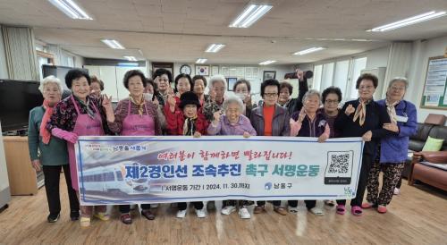 [½Åµ¿¾Æ¹æ¼Û ÀÎõ= À±¹Î½Ä±âÀÚ] ÀÎõ½Ã ³²µ¿±¸ ¸¸¼ö6µ¿Àº °ü³» ¾ÆÆÄÆ® °æ·Î´ç 13°³¼Ò ¾î¸£½Åµé°ú ÇÔ²² ¡®Á¦2°æÀμ± Á¶¼ÓÃßÁø Ã˱¸ ¼­¸í¿îµ¿¡¯À» ÁøÇàÇß´Ù°í 8ÀÏ ¹àÇû´Ù. Á¦2°æÀμ±Àº ¿¬¼ö±¸ ûÇпªÀ» ±âÁ¡À¸·Î ³²µ¿±¸ ³íÇö, ¼­Ã¢À» °ÅÃÄ ¼­¿ï·Î À̾îÁö´Â ±¤¿ªÃ¶µµ¡¦