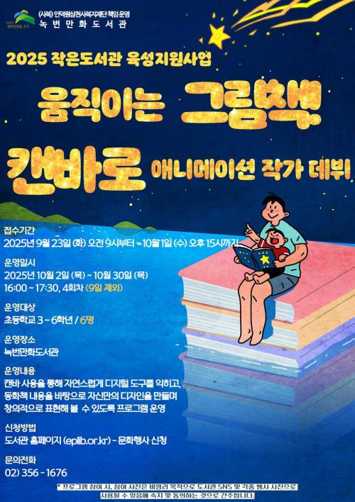 [½Åµ¿¾Æ¹æ¼Û ÀºÆò±¸=À̽ŵ¿±âÀÚ] ¼­¿ï ÀºÆò±¸´Â ³ì¹ø¸¸È­µµ¼­°üÀÌ 2025 ÀÛÀºµµ¼­°ü À°¼ºÁö¿ø»ç¾÷ÀÇ ÀÏȯÀ¸·Î ÃʵîÇлýÀ» À§ÇÑ Ã¢ÀÇ À¶ÇÕ ÇÁ·Î±×·¥ ¡®¿òÁ÷ÀÌ´Â ±×¸²Ã¥! ĵ¹Ù·Î ¾Ö´Ï¸ÞÀÌ¼Ç ÀÛ°¡ µ¥ºß¡¯¸¦ ¿î¿µÇÑ´Ù°í ¹àÇû´Ù. ÇÁ·Î±×·¥Àº µ¿È­Ã¥ ¡®´Á´ë¿Í ¾çÄ¡±â ¼Ò³â¡¯¡¦
