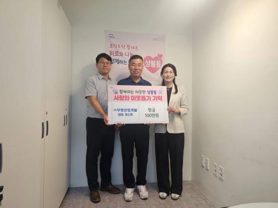 [½Åµ¿¾Æ¹æ¼Û °æ³²ÁøÁÖ=³²±Ã¿µ±â±âÀÚ] »óºÀµ¿ ÇàÁ¤º¹Áö¼¾ÅÍ´Â 30ÀÏ ¢ßºÎ¿µ»ê¾÷°³¹ß¿¡¼­ Ãß¼® ¸íÀýÀ» ¸Â¾Æ °ü³» ¾î·Á¿î ÀÌ¿ôÀ» À§ÇØ Çö±Ý 100¸¸ ¿øÀ» ±âŹÇß´Ù°í ¹àÇû´Ù. À̳¯ Àü´ÞµÈ ¼º±ÝÀº »óºÀµ¿ ÇàÁ¤º¹Áö¼¾Å͸¦ ÅëÇØ °æÁ¦ÀûÀ¸·Î ¾î·Á¿î Àú¼Òµæ °¡±¸ 20¼¼´ë¿¡ °í¸£°Ô¡¦