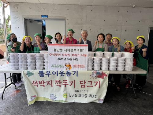 [½Åµ¿¾Æ¹æ¼Û ÀÎõ=À±¹Î½Ä±âÀÚ] ÀÎõ °Ë´Üµ¿ »õ¸¶À»ºÎ³àȸ(ȸÀå ¹®±¤¼÷)´Â 1ÀÏ °ü³» ¹ÎÁ· ´ë¸íÀý Ãß¼®À» ¸Â¾Æ Áö¿ª ³» ¾î·Á¿î ÀÌ¿ôµé¿¡°Ô µû¶æÇÑ ¸¶À½À» ÀüÇϰíÀÚ Á¤¼º²¯ ´ã±Ù ¼¯¹ÚÁö 30¹Ú½º¸¦ °Ë´Üµ¿ Áö¿ª»çȸº¸ÀåÇùÀÇü(µ¿Àå ±è¸íÁø, À§¿øÀå ¹®¹Ì°æ)¿¡ ±âŹÇß´Ù. ÀÌ¡¦
