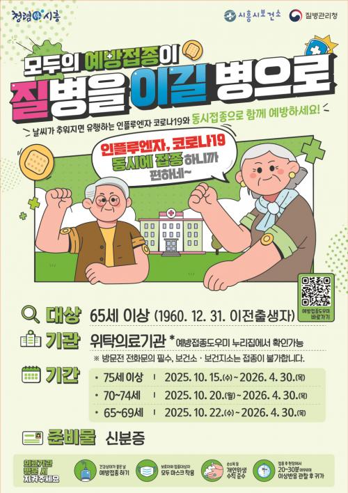 [½Åµ¿¾Æ¹æ¼Û ½ÃÈï½Ã=À̽ŵ¿±âÀÚ] ½ÃÈï½Ã´Â ¿À´Â 10¿ù 15ÀϺÎÅÍ ³»³â 4¿ù 30ÀϱîÁö 65¼¼ ÀÌ»ó(1960³â 12¿ù 31ÀÏ ÀÌÀü Ãâ»ýÀÚ) ¾î¸£½ÅÀ» ´ë»óÀ¸·Î µ¶°¨(ÀÎÇ÷翣ÀÚ)°ú Äڷγª19 ¿¹¹æÁ¢Á¾À» µ¿½Ã¿¡ ÁøÇàÇÑ´Ù. Á¢Á¾Àº ¿¬·É´ëº°·Î ¼øÂ÷ÀûÀ¸·Î ÁøÇàµÈ´Ù. ¡ã75¼¼ ÀÌ»óÀº 10¿ù¡¦