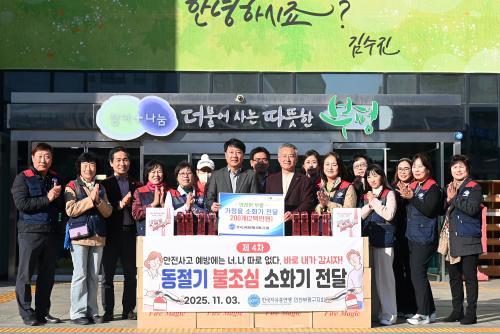 [½Åµ¿¾Æ¹æ¼Û ÀÎõ=À±¹Î½Ä±âÀÚ]ºÎÆò±¸(±¸Ã»Àå Â÷ÁØÅÃ)´Â Áö³­ 3ÀÏ Çѱ¹ÀÚÀ¯ÃÑ¿¬¸Í ºÎÆò±¸Áöȸ·ÎºÎÅÍ È­Àç ¿¹¹æÀ» À§ÇÑ ¼ÒÈ­±â 200°³¸¦ Àü´Þ¹Þ¾Ò´Ù°í ¹àÇû´Ù. ºÎÆò±¸Áöȸ´Â ¼Ò¹æÀÇ ³¯(11¿ù 9ÀÏ)À» ±â³äÇØ Áö³­ 2022³âºÎÅÍ ¸Å³â ¼ÒÈ­±â¸¦ Àü´ÞÇØ ¿À°í ÀÖÀ¸¸ç, À̸¦ Áöȸ¡¦