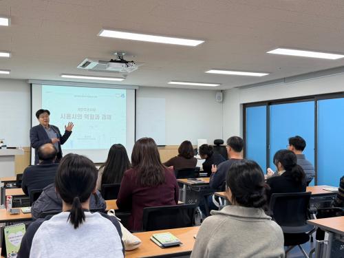 [½Åµ¿¾Æ¹æ¼Û ½ÃÈï½Ã=À̽ŵ¿±âÀÚ] ½ÃÈï½Ã´Â Áö³­ 11¿ù 14ÀÏ ½ÃÈï½ÃÀÚ¿øºÀ»ç¼¾ÅÍ¿¡¼­ °øÁ÷ÀÚ¸¦ ´ë»óÀ¸·Î ÀÚÄ¡ºÐ±Ç¿¡ ´ëÇÑ ÀÌÇØ¸¦ ³ôÀÌ°í ´õ ³ªÀº Áö¹æÀÚÄ¡ ½ÇÇöÀ» µµ¸ðÇϰíÀÚ ¡®ÀÚÄ¡ºÐ±Ç °øÁ÷ÀÚ ¿ª·® °­È­ ±³À°¡¯À» ÃßÁøÇß´Ù. À̹ø ±³À°Àº ¼Ûâ¼® (»ç)Áö¹æºÐ±Ç¿¬±¸¼Ò ÀÌ¡¦