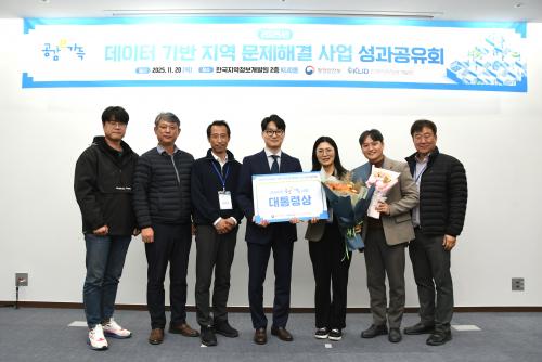 [½Åµ¿¾Æ¹æ¼Û Çϳ²½Ã=À̽ŵ¿±âÀÚ] Çϳ²½Ã´Â 11¿ù 20ÀÏ Çѱ¹Áö¿ªÁ¤º¸°³¹ß¿ø¿¡¼­ ¿­¸° ¡®2025³â µ¥ÀÌÅÍ ±â¹Ý Áö¿ª¹®Á¦ ÇØ°á(°ø°¨e°¡µæ) »ç¾÷ ¼º°ú°øÀ¯È¸¡¯¿¡¼­ ¡®º¸ÇàÀÚ ¾ÈÀüÀ» À§ÇÑ AI±â¹Ý ºÒ¹ýÅëÇà ¿ÀÅä¹ÙÀÌ ´Ü¼Ó¼­ºñ½º¡¯·Î ´ëÅë·É»óÀ» °Å¸ÓÁã¸ç ¿ÃÇØ °ø¸ð»ç¾÷ ÃÖ°í Æò°¡¡¦