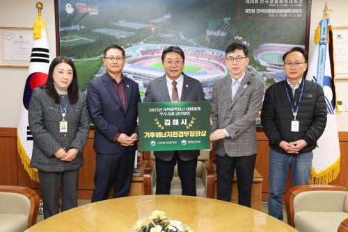 [½Åµ¿¾Æ¹æ¼Û °æ³²±èÇØ=³²±Ã¿µ±â±âÀÚ] ±èÇØ½Ã´Â Áö³­ 24ÀÏ ¼­¿ï ¿ë»ê µå·¡°ï½ÃƼ¿¡¼­ ±âÈÄ¿¡³ÊÁöȯ°æºÎ, ÇàÁ¤¾ÈÀüºÎ °øµ¿ ÁÖÃÖ·Î ¿­¸° Á¦3ȸ È­Çлç°í Áö¿ª´ëºñü°è ¿ì¼ö»ç·Ê °æÁø´ëȸ¿¡¼­ ¡®±âÈÄ¿¡³ÊÁöȯ°æºÎÀå°ü»ó¡¯À» ¼ö»óÇß´Ù°í 26ÀÏ ¹àÇû´Ù. À̹ø °æÁø´ëȸ´Â ÁöÀÚ¡¦