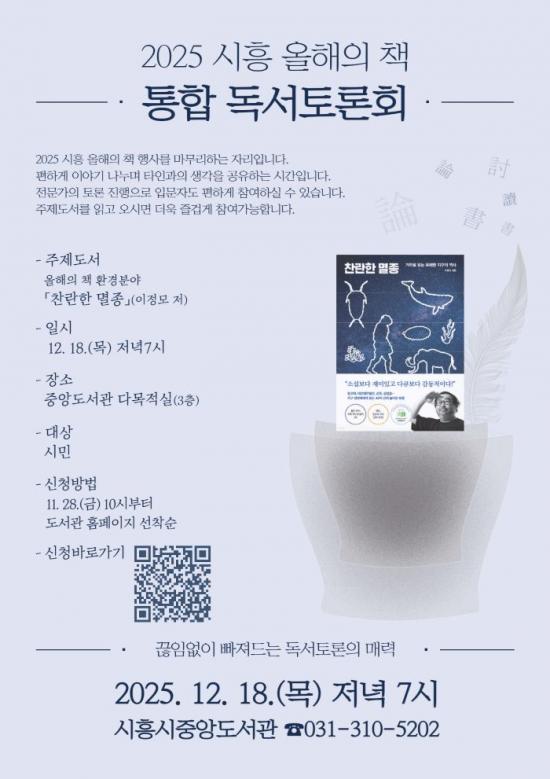 [½Åµ¿¾Æ¹æ¼Û ½ÃÈï½Ã=À̽ŵ¿±âÀÚ] ½ÃÈï½ÃÁß¾Óµµ¼­°üÀº ¿À´Â 12¿ù 18ÀÏ ¿ÀÈÄ 7½Ã Áß¾Óµµ¼­°ü 3Ãþ ´Ù¸ñÀû½Ç¿¡¼­ ȯ°æ ºÐ¾ß ¿ÃÇØÀÇ Ã¥À¸·Î ¼±Á¤µÈ ÀÌÁ¤¸ð ÀÛ°¡ÀÇ ¡¸Âù¶õÇÑ ¸êÁ¾¡¹À» ÁÖÁ¦·Î ½Ã¹Îµé°ú ÇÔ²²ÇÏ´Â ¡®2025 ½ÃÈï ¿ÃÇØÀÇ Ã¥ ÅëÇÕ µ¶¼­Åä·Ðȸ¡¯¸¦ °³ÃÖÇÑ´Ù. À̹ø¡¦
