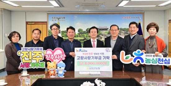 [½Åµ¿¾Æ¹æ¼Û °æ³²ÁøÁÖ=±è¸í¼ö±âÀÚ] ÁøÁֽô 3ÀÏ ½Ãû ±â¾÷ÀÎÀÇ ¹æ¿¡¼­ »êû±º³óÇù ÀÓÁ÷¿ø 80¿© ¸íÀÌ µ¿ÂüÇÑ °íÇâ»ç¶û±âºÎ±Ý 800¸¸ ¿øÀ» ±âŹ¹Þ¾Ò´Ù°í ÀüÇß´Ù. À̹ø ±âŹÀº ÁøÁÖ¼­ºÎ³óÇù°ú »êû±º³óÇù ÀÓÁ÷¿øµéÀÌ ¾ç Áö¿ªÀÇ ¹ßÀüÀ» ÀÀ¿øÇϱâ À§ÇØ ¶æÀ» ¸ð¾Æ »óÈ£ ±âºÎ¡¦