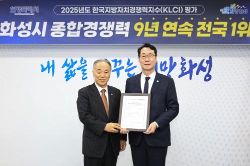 [½Åµ¿¾Æ¹æ¼Û=ÀÌÀçö±âÀÚ] È­¼ºÆ¯·Ê½Ã°¡ 2025³â Çѱ¹Áö¹æÀÚÄ¡°æÀï·ÂÁö¼ö(KLCI) Á¶»ç¿¡¼­ 9³â ¿¬¼Ó Àü±¹ 1À§¸¦ Â÷ÁöÇß´Ù. À̳¯ ½Ãû Áß¾ÓȸÀǽǿ¡¼­ ¿­¸° Àü´Þ½Ä¿¡´Â Á¤¸í±Ù È­¼ºÆ¯·Ê½ÃÀå, (»ç)Çѱ¹°ø°øÀÚÄ¡¿¬±¸¿ø ±èÃæÈ¯ ÀÌ»çÀå ¹× À̱âÇå ´ëÇ¥ÀÌ»ç µî 10¿© ¸íÀÌ Âü¼®¡¦