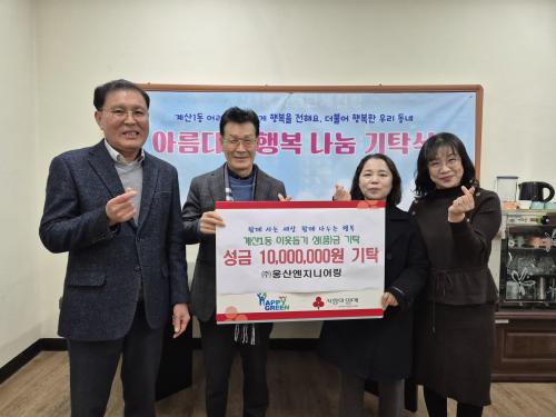 [½Åµ¿¾Æ¹æ¼Û ÀÎõ=À±¹Î½Ä±âÀÚ]ÀÎõ½Ã °è¾ç±¸ °è»ê1µ¿(µ¿Àå ±èÈñ¼ö)Àº Áö³­ 12¿ù 23ÀÏ, ¢ß¿õ»ê¿£Áö´Ï¾î¸µÀÌ ¿¬¸»À» ¸Â¾Æ ÀÌ¿ô µ½±â ¼º±Ý 1,000¸¸ ¿øÀ» ±âŹÇß´Ù°í ¹àÇû´Ù. ¢ß¿õ»ê¿£Áö´Ï¾î¸µ ¿À¼¼º¹ ´ëÇ¥´Â ¡°¾î·Æ°í Èûµç ½Ã°£À» º¸³»°í ÀÖ´Â ÀÌ¿ôµéÀÌ Á¡Á¡ ´Ã¾î³ª°í ¡¦