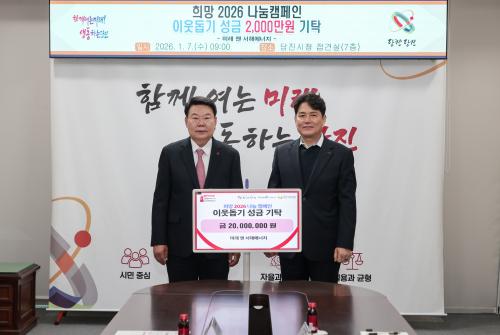 [½Åµ¿¾Æ¹æ¼Û=ÀÌÀçö±âÀÚ] ´çÁø½Ã´Â 1¿ù 7ÀÏ ¿ÀÀü ½Ãû 7Ãþ Á¢°ß½Ç¿¡¼­ ¹Ì·¡¾Ø¼­ÇØ¿¡³ÊÁö·ÎºÎÅÍ ÀÌ¿ôµ½±â ¼º±Ý 2,000¸¸ ¿øÀ» ±âŹ¹Þ¾Ò´Ù. À̳¯ ±âŹ½Ä¿¡´Â ¹Ì·¡¾Ø¼­ÇØ¿¡³ÊÁö ¼Û¹Î¼· ´ëÇ¥À̻縦 ºñ·ÔÇØ ¿À¼ºÈ¯ ´çÁø½ÃÀå µîÀÌ Âü¼®ÇØ ³ª´®ÀÇ ¶æÀ» ÇÔ²²Çß´Ù. ¼º±ÝÀº Ãæ³²¡¦