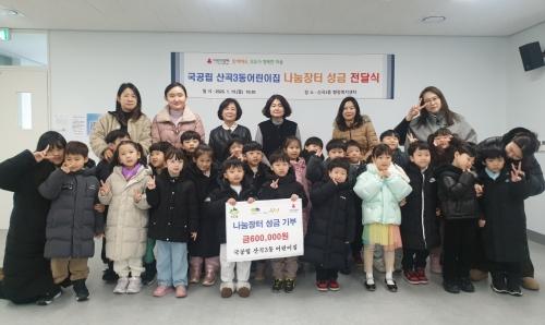 [½Åµ¿¾Æ¹æ¼Û ÀÎõ=À±¹Î½Ä±âÀÚ]ºÎÆò±¸ »ê°î3µ¿Àº 19ÀÏ µ¿ ÇàÁ¤º¹Áö¼¾ÅÍ¿¡¼­ ±¹°ø¸³ »ê°î3µ¿ ¾î¸°ÀÌÁýÀ¸·ÎºÎÅÍ ³ª´®ÀåÅÍ ¼öÀÍ±Ý 60¸¸¿øÀ» ±âŹ¹Þ¾Ò´Ù. À̹ø ¼º±ÝÀº ¾î¸°ÀÌÁý ¿ø¾ÆµéÀÌ ±âºÎÇÑ Àå³­°¨°ú ÀÇ·ù µîÀ» Á÷Á¢ ÆÇ¸ÅÇØ ¸¶·ÃÇÑ ¼öÀͱÝÀÌ´Ù. Àü´Þ½Ä¿¡´Â ¿ø¾ÆµéÀ» ¡¦