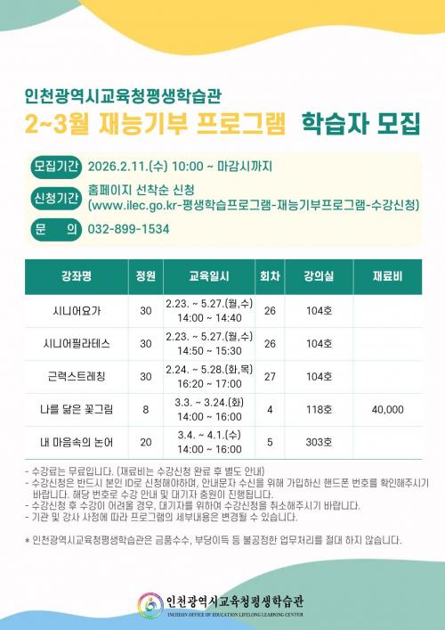 ÀÎõ±¤¿ª½Ã±³À°Ã»Æò»ýÇнÀ°ü, Àç´É±âºÎ ÇÁ·Î±×·¥ ÇнÀÀÚ ¸ðÁý