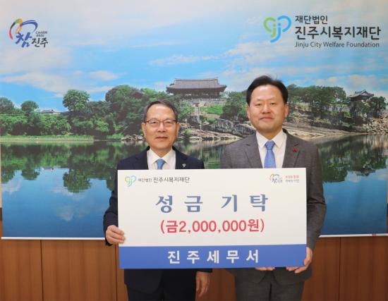 [½Åµ¿¾Æ¹æ¼Û °æ³²ÁøÁÖ=³²±Ã¿µ±â±âÀÚ] ÁøÁֽú¹ÁöÀç´ÜÀº 12ÀÏ ÁøÁÖ ¼¼¹«¼­°¡ ¼³ ¸íÀýÀ» ¸Â¾Æ Áö¿ª»çȸ ¾î·Á¿î ÀÌ¿ôÀ» µ½±â À§ÇØ ¼º±Ý 200¸¸ ¿øÀ» ±âŹÇß´Ù°í ¹àÇû´Ù. À̹ø ±âŹÀº ¸íÀýÀ» ¾ÕµÎ°í °æÁ¦Àû ¾î·Á¿òÀ» °Þ´Â ¼Ò¿Ü°èÃþÀ» Áö¿øÇϰí, Áö¿ª ³» ³ª´® ¹®È­¸¦ È®»êÇÏ¡¦