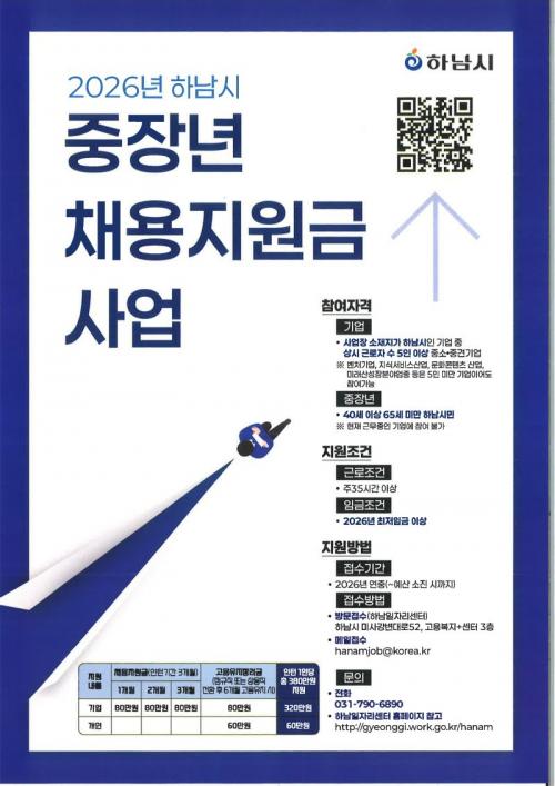 [½Åµ¿¾Æ¹æ¼Û Çϳ²½Ã=À̽ŵ¿±âÀÚ] Çϳ²½Ã(½ÃÀå ÀÌÇöÀç)°¡ Áö¿ª ³» ÁßÀå³â ±¸Á÷ÀÚÀÇ ÀçÃë¾÷À» µ½°í Áß¼Ò±â¾÷ÀÇ Àη³­À» ÇØ¼ÒÇϱâ À§ÇØ ¡®2026³â ÁßÀå³â ä¿ëÁö¿ø±Ý »ç¾÷¡¯À» º»°ÝÀûÀ¸·Î ÃßÁøÇÑ´Ù°í ¹àÇû´Ù. À̹ø »ç¾÷Àº dzºÎÇÑ °æÇè°ú ¿ª·®À» °®Ãá ¸¸ 40¼¼ ÀÌ»ó 65¼¼ ¡¦