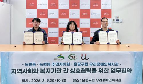 [½Åµ¿¾Æ¹æ¼Û ÀºÆò±¸=À̽ŵ¿±âÀÚ] ¼­¿ï ÀºÆò±¸ ³ì¹øµ¿Àº Áö³­ 9ÀÏ ±¸¸³ ¿ì¸®Àå¾ÖÀκ¹Áö°ü°ú Áö¿ª»çȸ¿Í º¹Áö±â°ü °£ »óÈ£ Çù·ÂÀ» À§ÇÑ ¾÷¹«Çù¾àÀ» ü°áÇß´Ù°í ¹àÇû´Ù. À̹ø Çù¾àÀº º¹Áö±â°ü°ú Çù·ÂÀ» °­È­Çϰí Áö¿ª»çȸ ÅëÇÕµ¹º½°ú ÁֹΠÂü¿© ÇÁ·Î±×·¥ È®´ë¸¦ À§ÇØ ¸¶¡¦