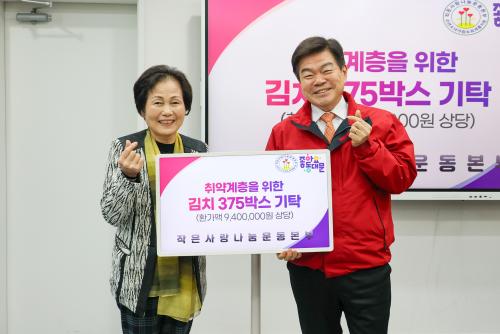 [½Åµ¿¾Æ¹æ¼Û µ¿´ë¹®±¸=À̽ŵ¿±âÀÚ] ¼­¿ï µ¿´ë¹®±¸´Â 9ÀÏ ÀÛÀº»ç¶û³ª´®¿îµ¿º»ºÎ·ÎºÎÅÍ Àú¼Òµæ °¡Á¤À» À§ÇÑ ±èÄ¡ 2§¸ 375¹Ú½º(940¸¸ ¿ø »ó´ç)¸¦ Àü´Þ¹Þ¾Ò´Ù°í ¹àÇû´Ù. Àü´Þ½ÄÀº µ¿´ë¹®±¸Ã» 5Ãþ ±¸Ã»Àå Á¢°ß½Ç¿¡¼­ ¿­·ÈÀ¸¸ç, ÀÌÇÊÇü µ¿´ë¹®±¸Ã»ÀåÀ» ºñ·ÔÇØ À̳²¼÷ ´ëÇ¥,¡¦